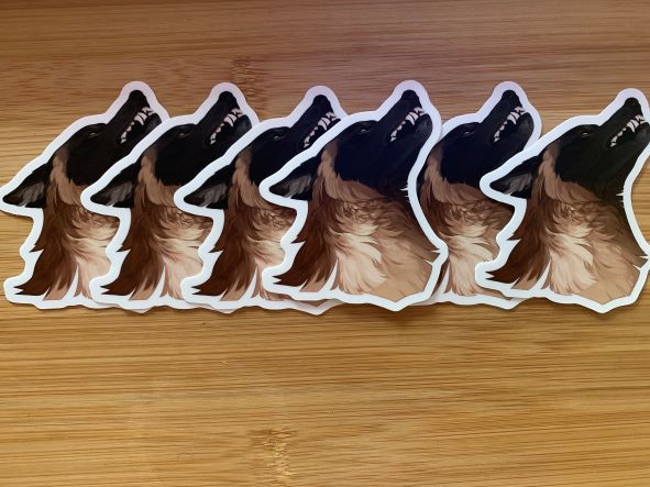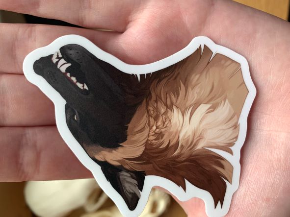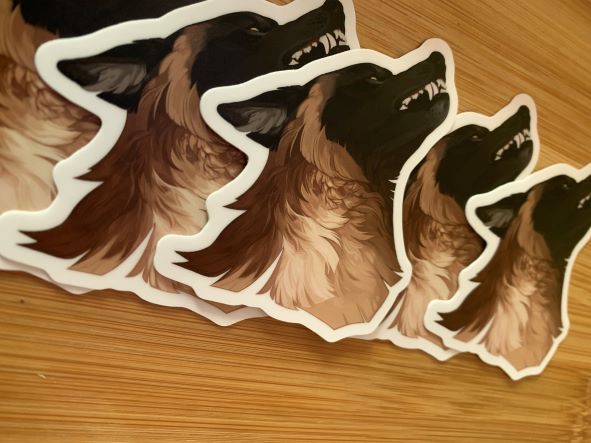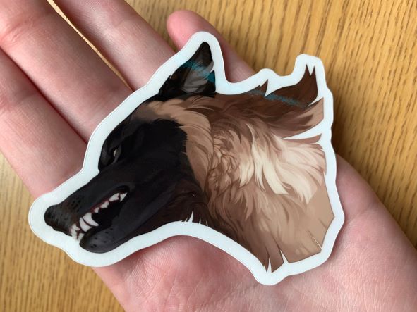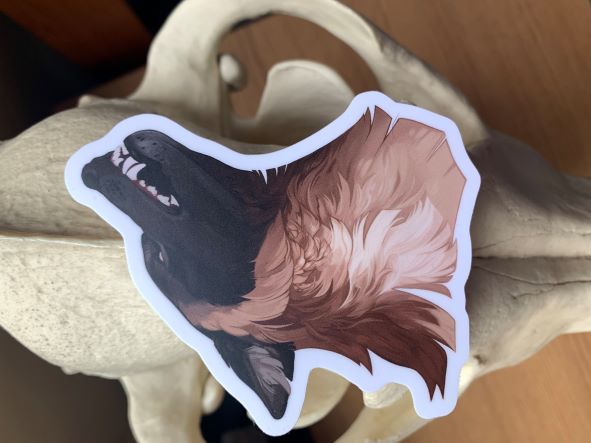 Black-phase (brown) snarling wolf sticker available in die-cut vinyl and clear! These stickers are approximately 3x3".