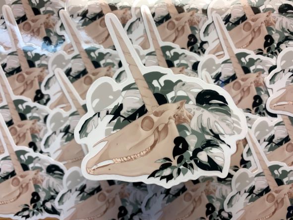 Glossy clear unicorn skull sticker