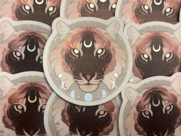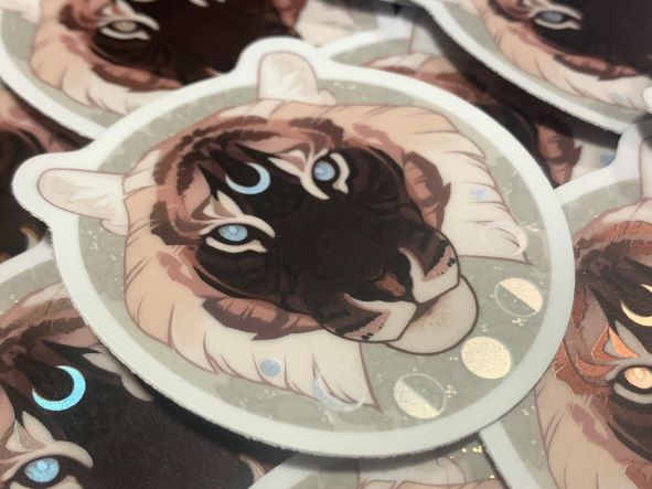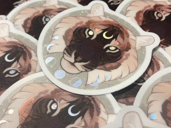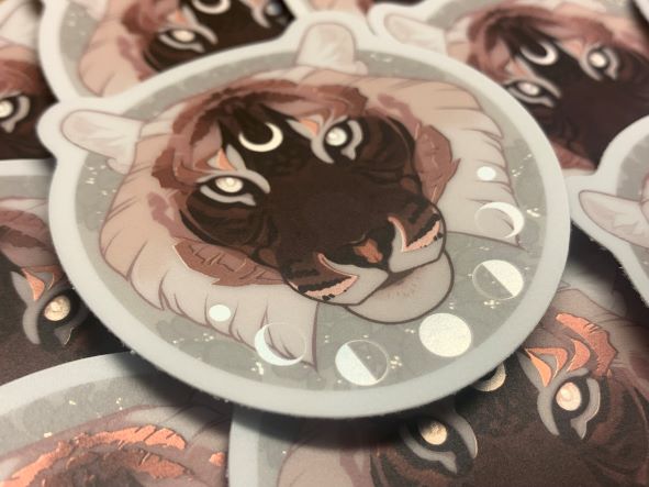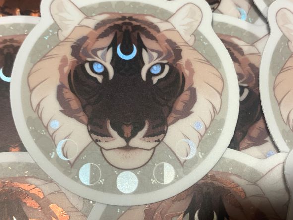 **Keep in mind this tiger is my design for my own mascot/oc. Just because you buy a sticker, you don't own the rights to his design and may not tattoo this on yourself or sell his design!