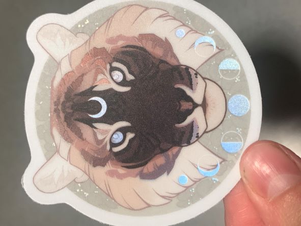 Sturdy vinyl + holographic sticker! Waterproof, dishwasher safe, and weatherproof.