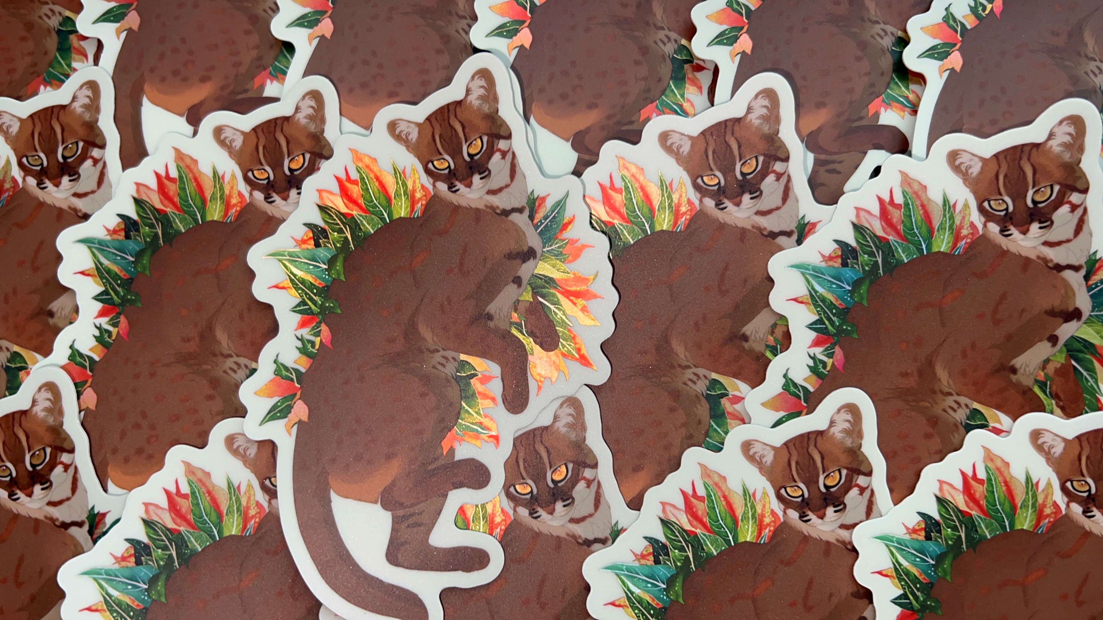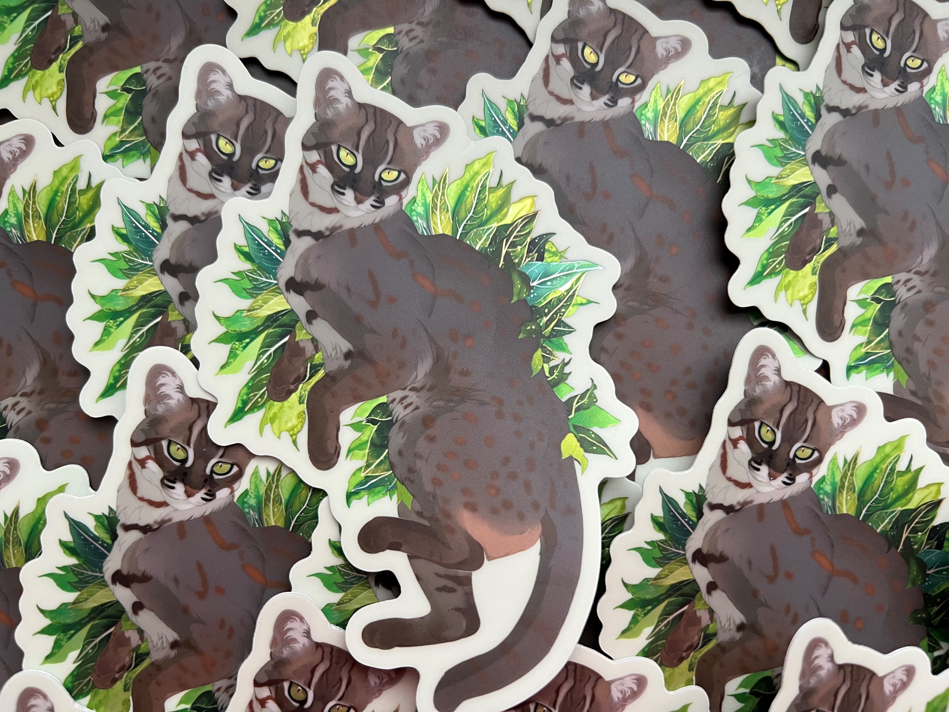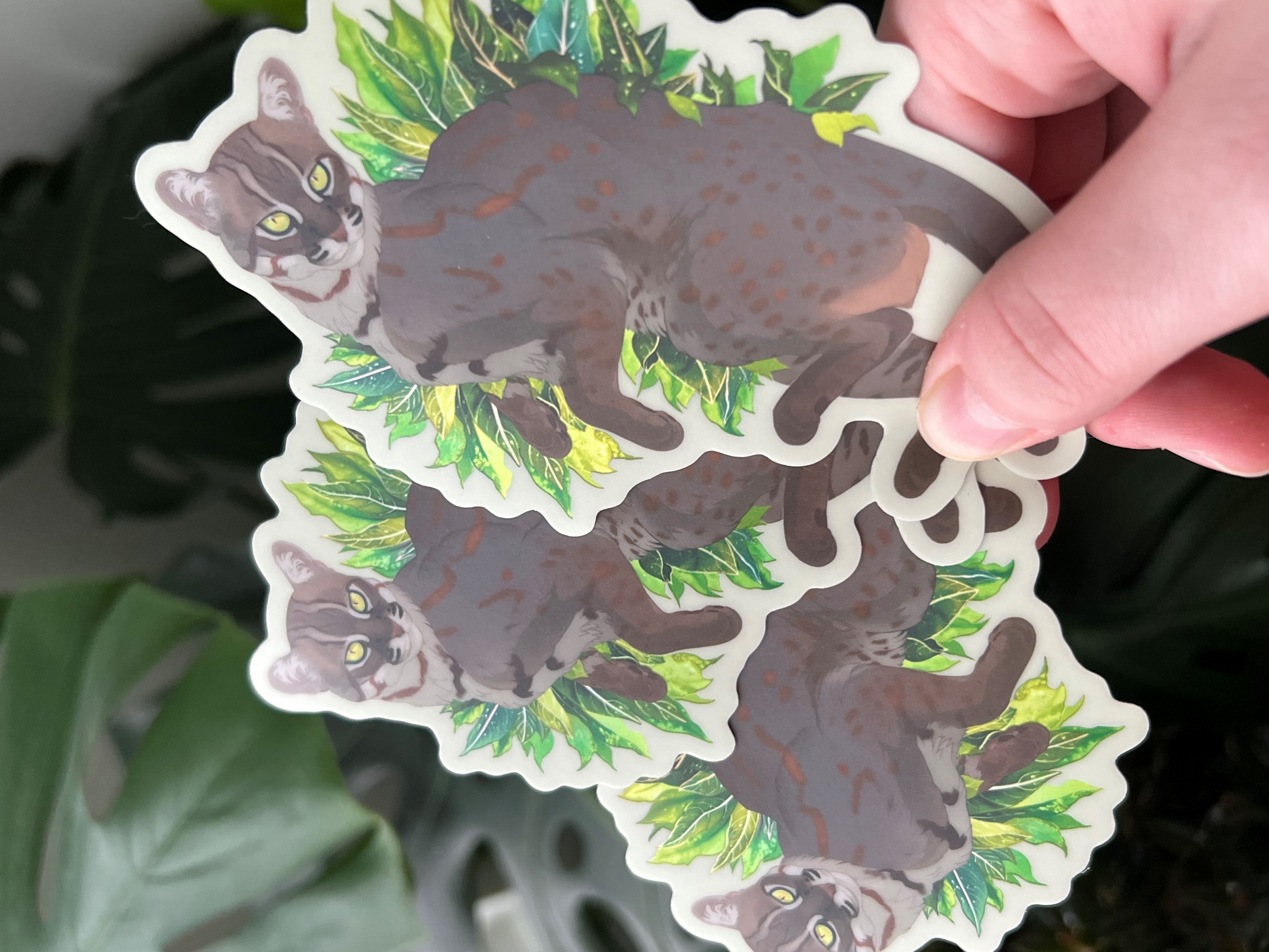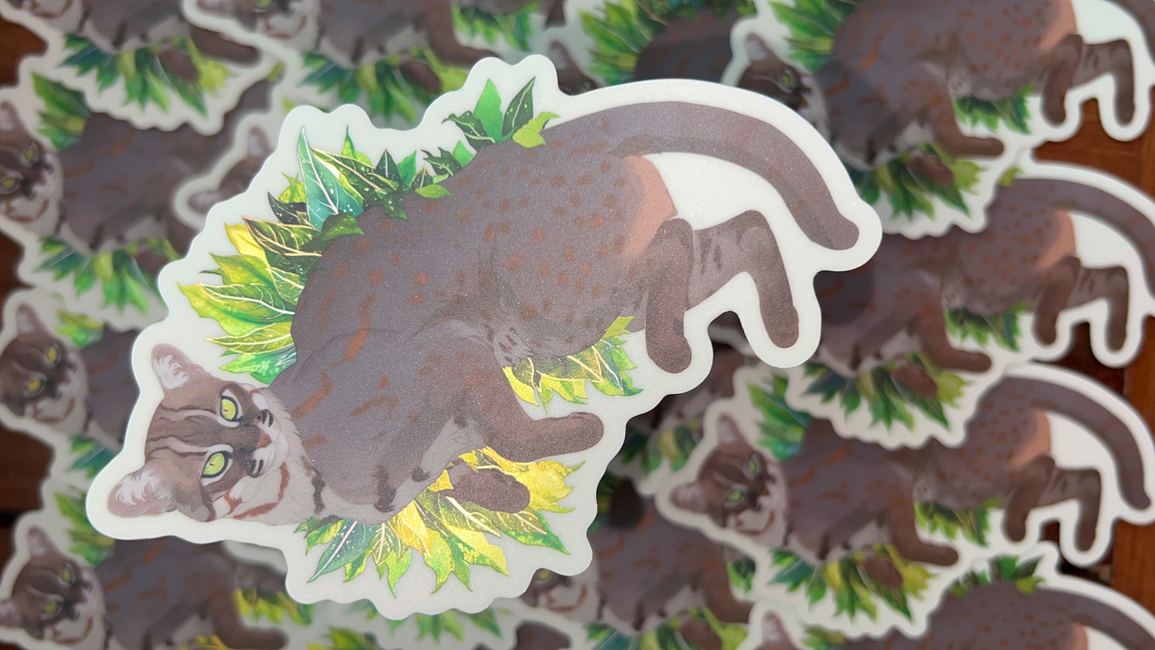 Approx. 4"x4" vinyl sticker with a holo effect on the leaves and eyes. This sticker is waterproof and dishwasher safe.