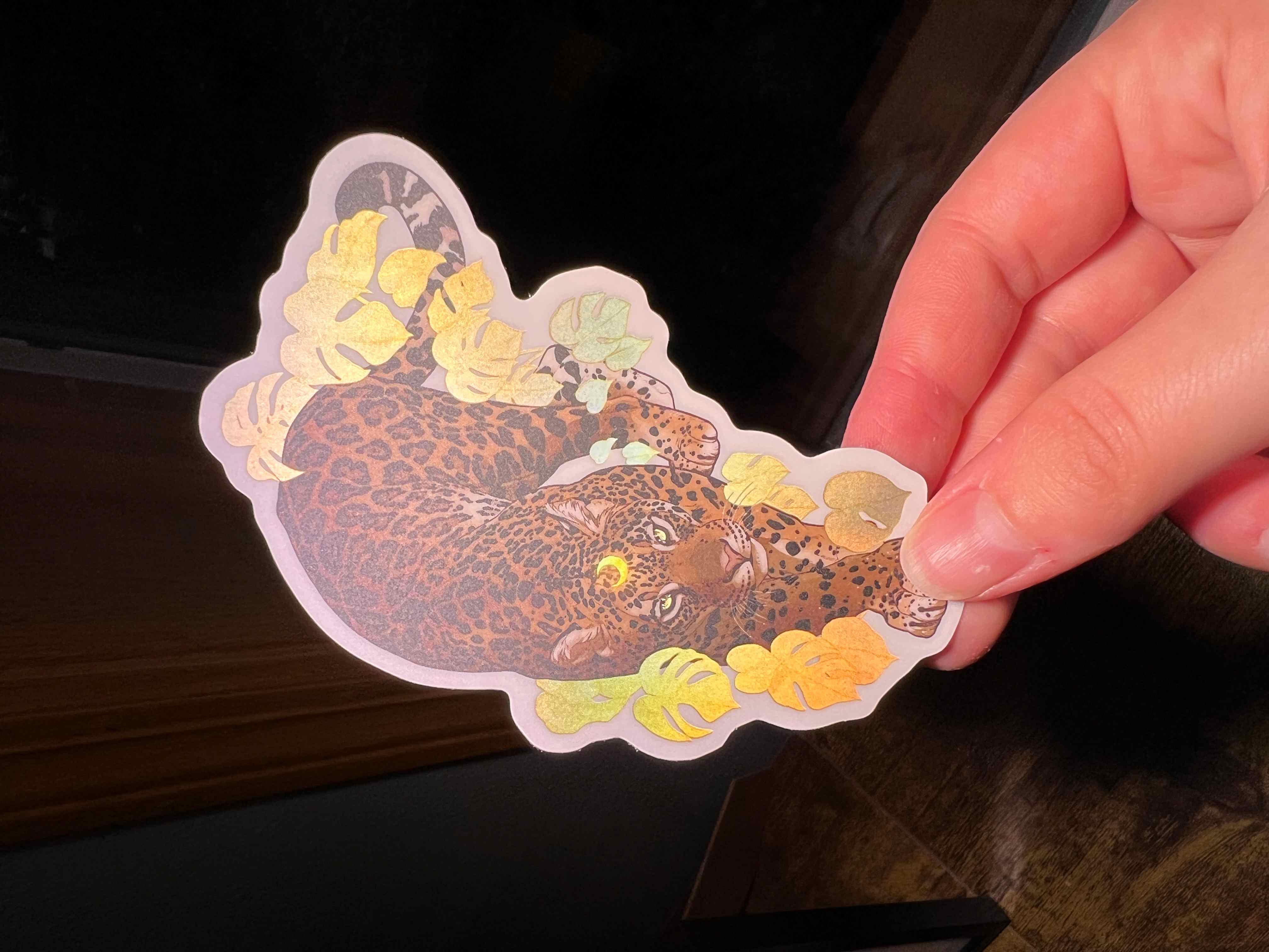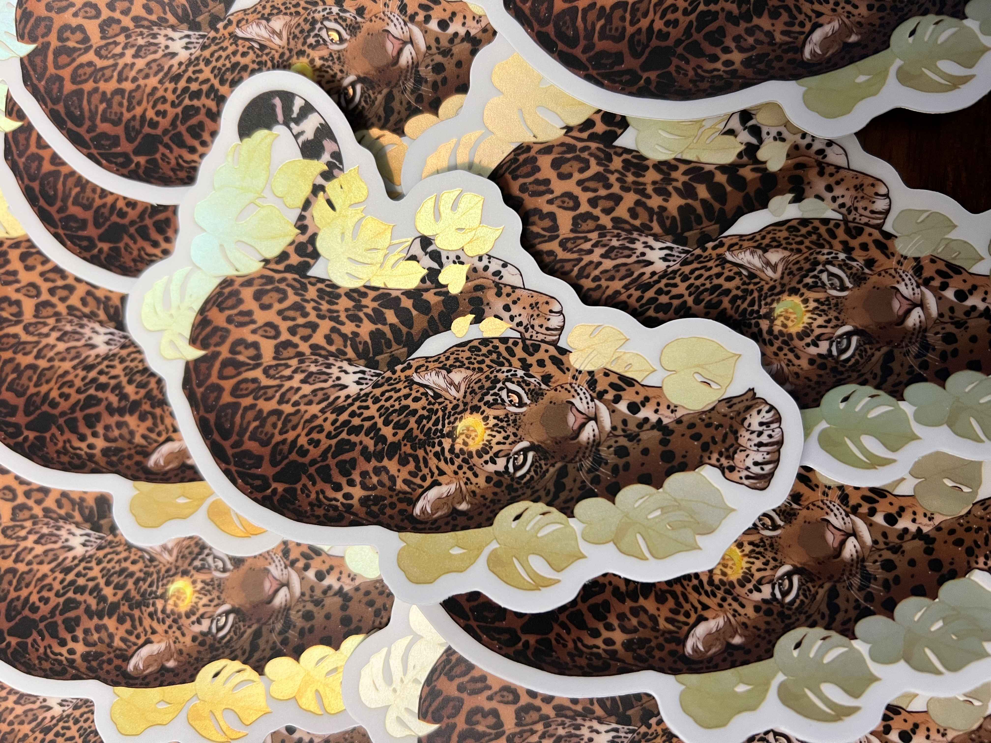Size: approx. 4" x 3" Die-cut, vinyl sticker with a holo-effect. Dishwasher safe and waterproof!