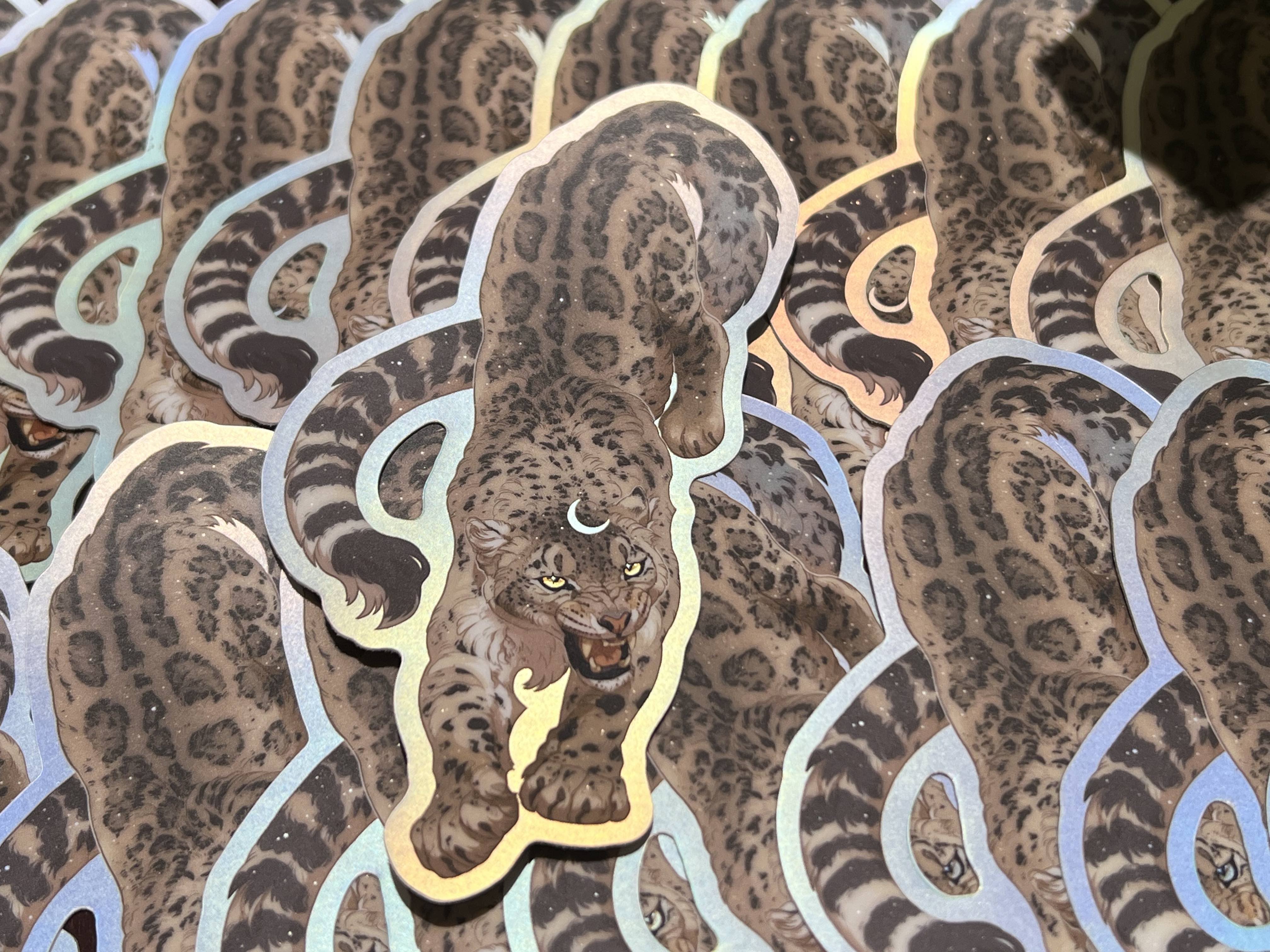 Die-cut vinyl sticker with holo effects on the moon, eyes, and subtle stars. This material is waterproof, weatherproof, and dishwasher safe!