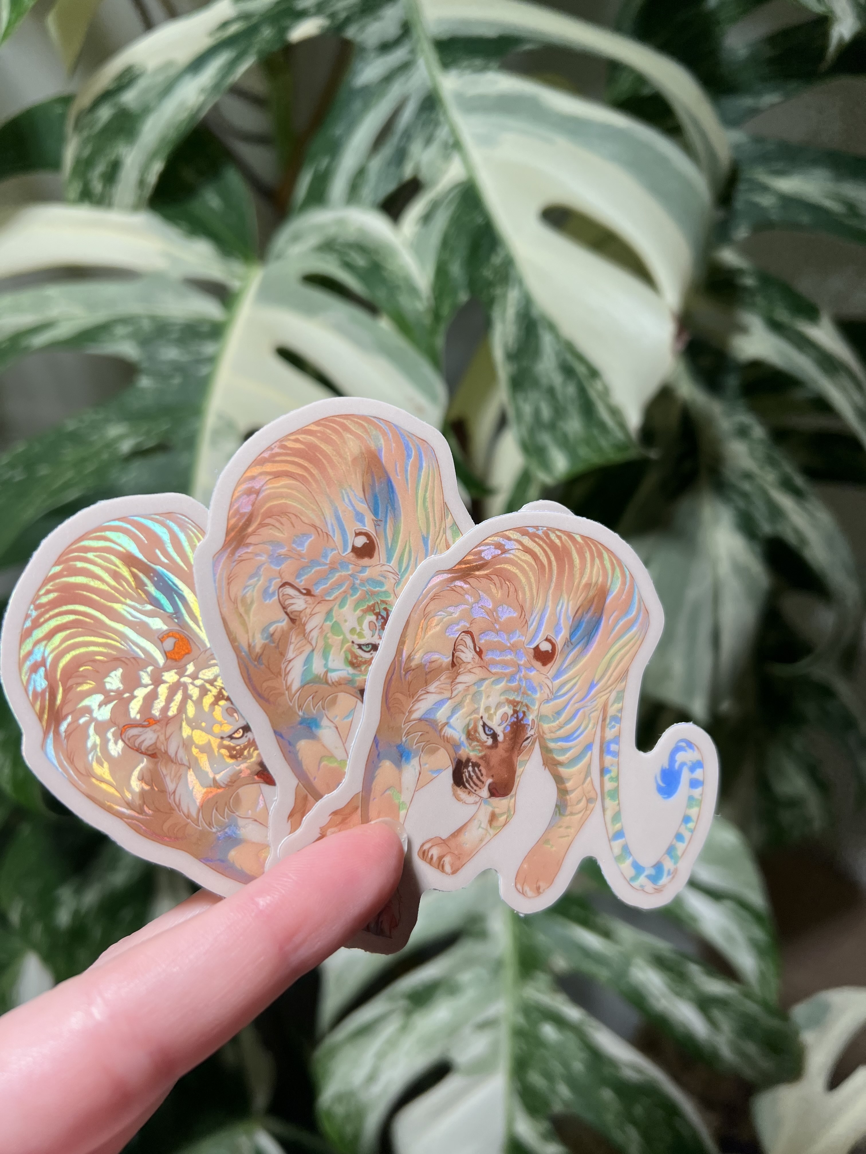 Sturdy vinyl, waterproof, and dishwasher safe! The stripes have a holographic effect.